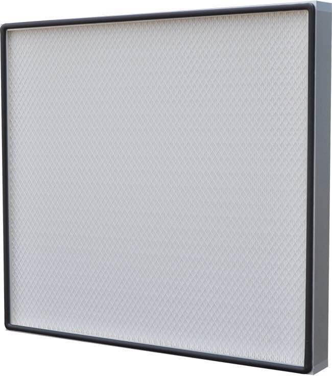PTFE超高效無隔板空氣過濾器是用超細玻璃纖維紙等制作而成,用熱溶膠作分隔物,與金屬外框組合而成。主要捕集0.12um以下的塵粒。